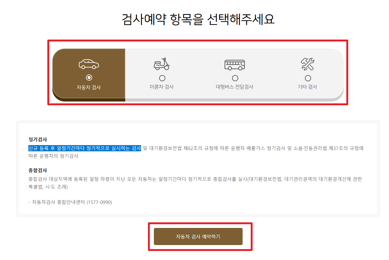 1. 교통안전공단 사이트에서 자신이 해당하는 검사 항목을 선택 후 자동차 검사 예약하기 클릭!