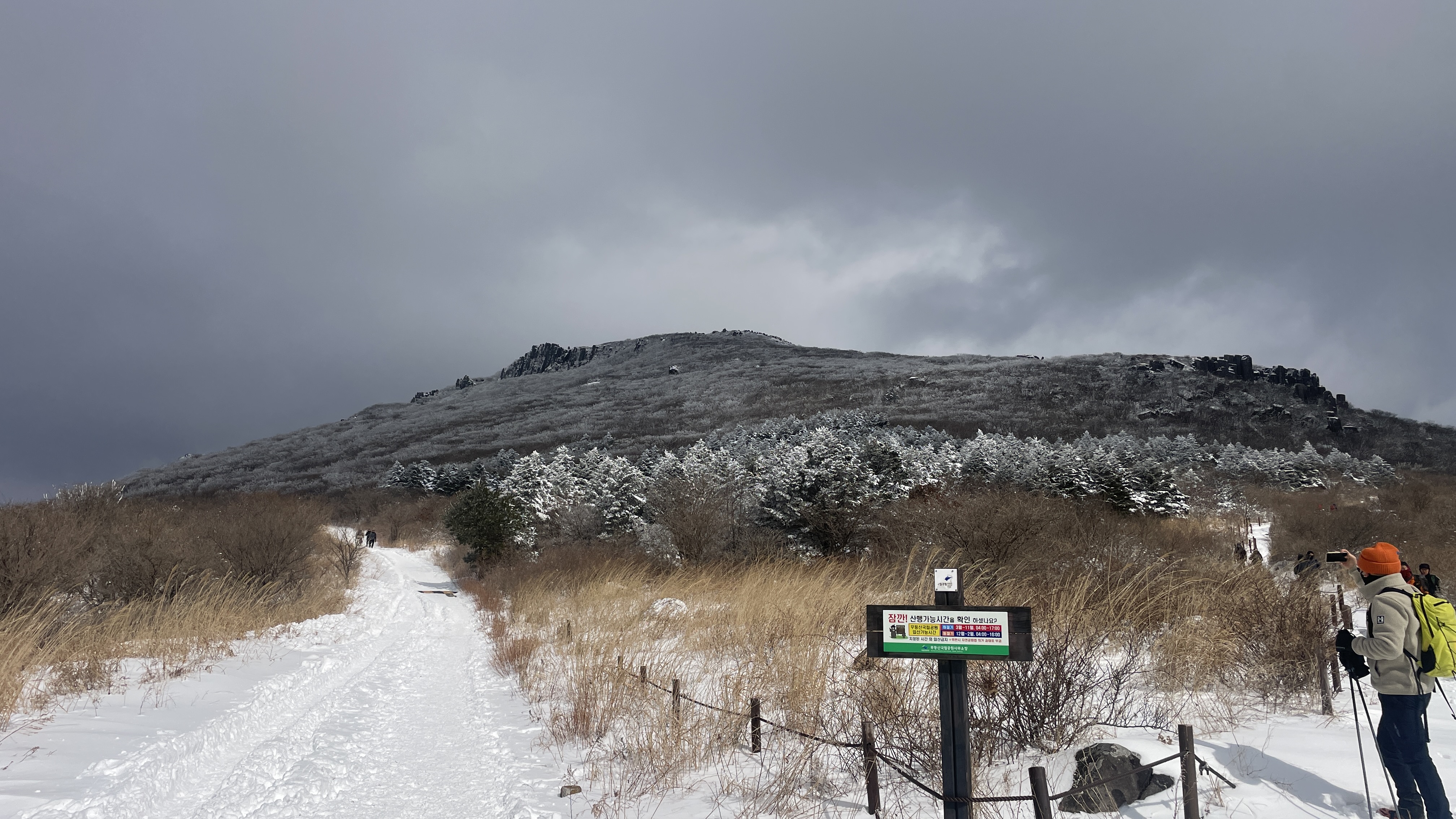 장불재 까지는 어렵지 않게 도착할 수 있어요. 점점 진해지는 설산의 모습을 보면서 가다보면 금방 도착합니다. 장불재에도 등산객들이 휴식할 수 있는 공간이 널찍하게 펼쳐져 있습니다. 이곳에서 식사 및 간식을 드시고 화장실도 다녀올 수 있습니다.
