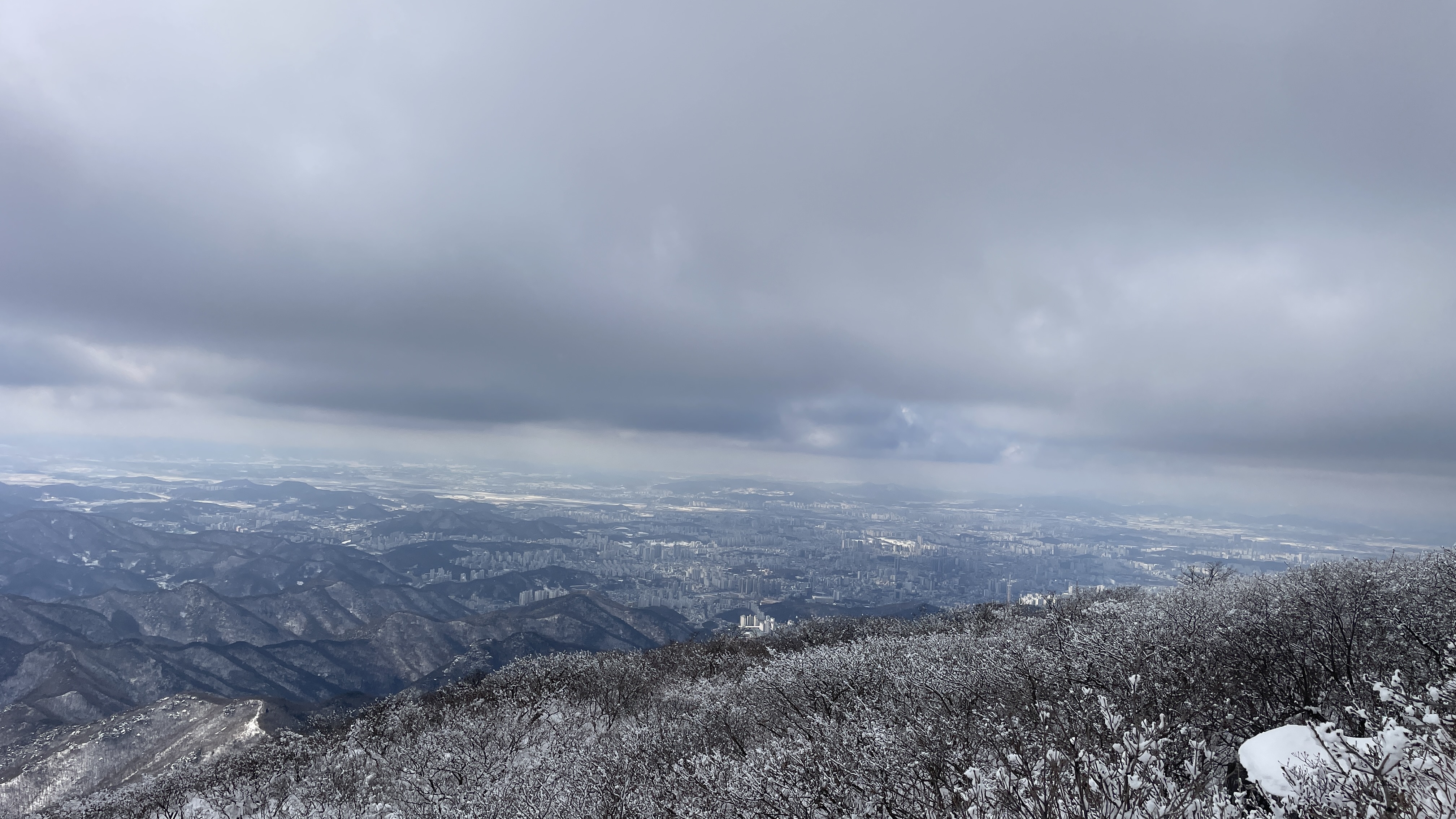 산 정상에서 바라보는 도시의 모습은 정말 빽빽하게 모여 사는 것 같아요.