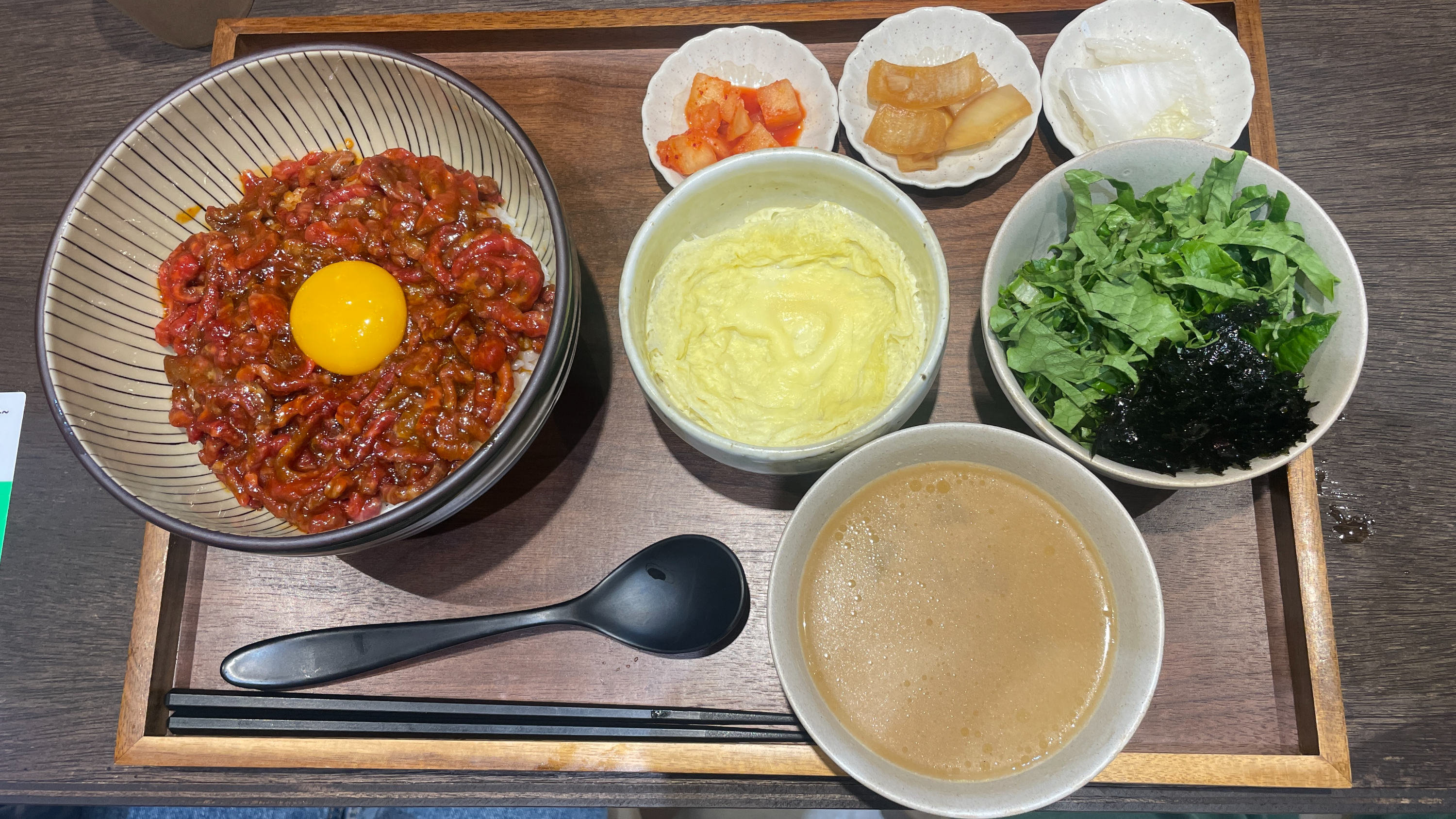 유케동 정식입니다. 육회와 상추, 김을 비벼 먹는데 양념이 정말 맛있습니다. 이건 한그릇 뚝딱 입니다.