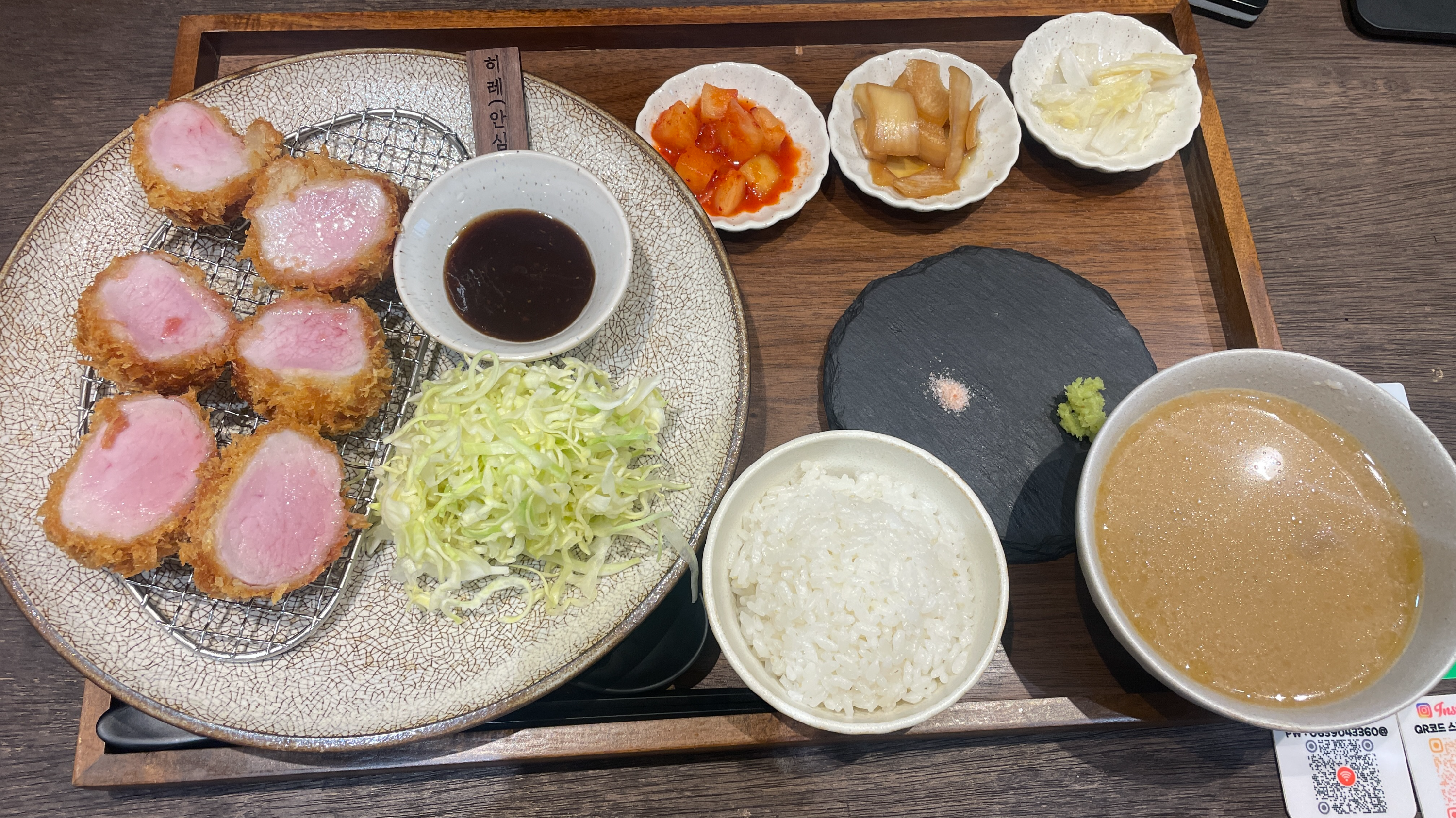 히레카츠 정식 입니다. 보기만 해도 겉바속초가 느껴지지 않나요? 바삭한 겉면과 촉촉한 속살에서 나오는 육즙이 환상의 궁합을 보여줍니다. 소금에도 찍어먹고, 와사비에도 찍고 트러플 오일에도 찍어 먹으며 다양한 맛을 즐길 수 있어 더욱 좋더라구요.