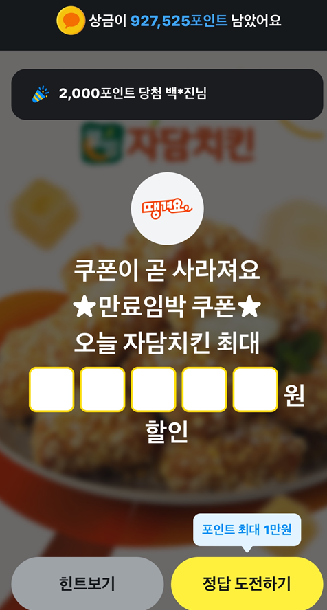 땡겨요: 오늘 자담치킨 최대 14,000 할인