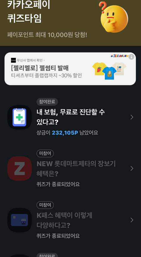 - 카카오톡 앱에서 '카카오페이' 서비스를 선택하거나, 퀴즈 관련 알림 메시지를 통해 접근할 수 있습니다.