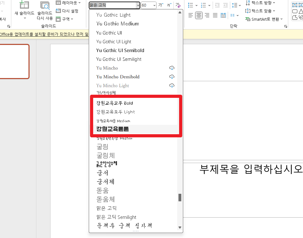 파워포인트를 실행시켜 글꼴을 보면 잘 설치됨을 확인할 수 있습니다.