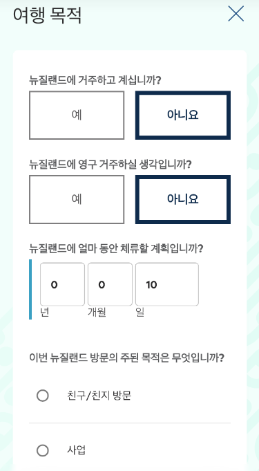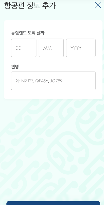 - 자신의 뉴질랜드 입국 이동수단을 선택! 보통 항공편으로 입국하시겠죠? 도착 날짜 및 한공편 명을 입