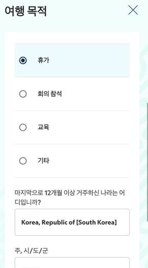 보통 여권정보 입력하면 자동으로 방문 나라가 입력 되어 질 겁니다. 뱅기 경유를 하신다면 경유 국가를 입력해 주시면 됩니다.