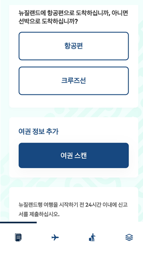 어느 나라든 입국을 하기전에 입국 신고서를 작성합니다. 보통 비행기에서 입국신고서를 나눠 주는데 온통 영어로 되어 있는 입국 신고서를 받으면 적잖이 당황하게 마련이죠.!! 뉴질랜드의 경우 자체 어플을 통해 사전 입국신고서를 작성하고 제출 할 수 있습니다. 미리 입국신고서를 작성해 놓고 신고하면 입국전 소비하는 에너지와 시간을 아낄 수 있겠죠?