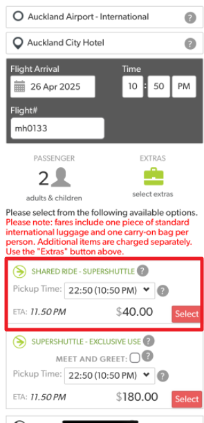 - 슈퍼셔틀은 여러종류가 있는데 다른거 생각하지 마시고 첫번째 쉐어라이드 선택합니다. 제 기준으로 둘이서 이용하는데 40이면 아주 합리적인 가격이라 할 수 있습니다.