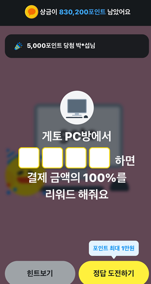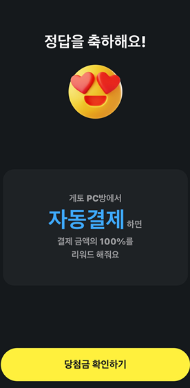 게토PC방에서 자동결제하면 결제 금액의 100%를 리워드 해줘요