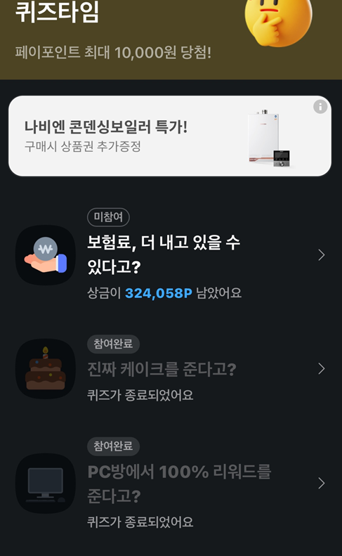 - 카카오톡 앱에서 '카카오페이' 서비스를 선택하거나, 퀴즈 관련 알림 메시지를 통해 접근할 수 있습니다.