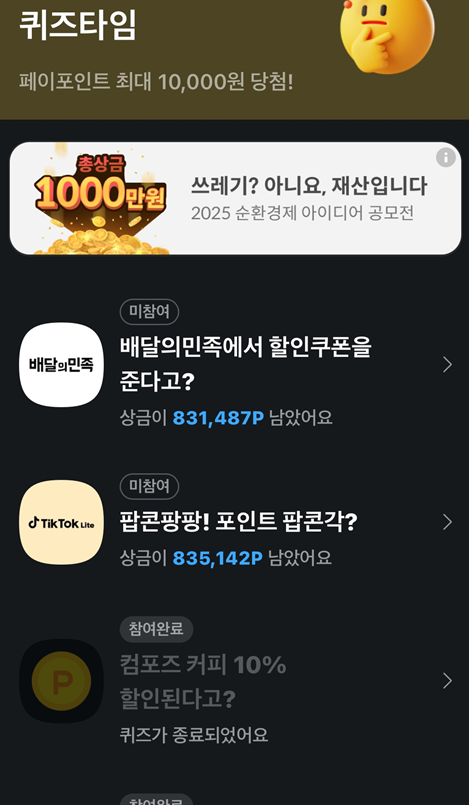 - 일부 퀴즈는 특정 기업이나 브랜드와 협력하여 제공되며, 관련 상품이나 서비스에 대한 혜택을 추가로 제공하기도 합니다.