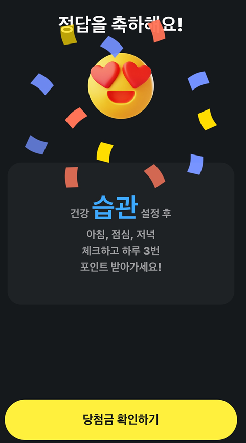 건강 습관 설정 후 아침, 전심, 저녁 체크하고 하루 3번 포인트 받아가세요!