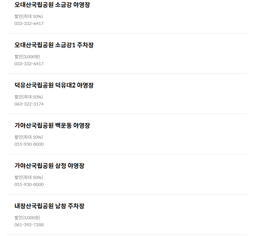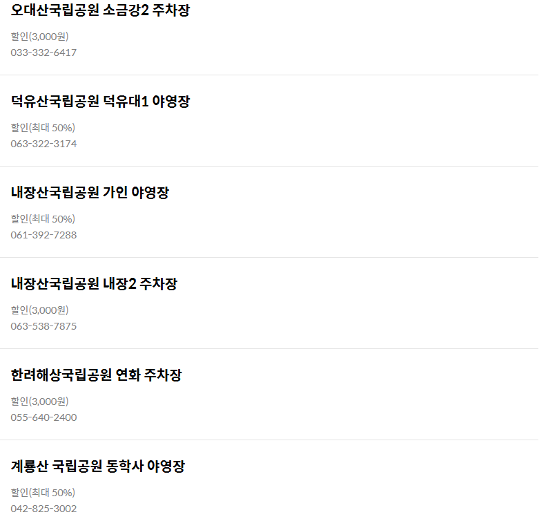 이 외에도 국립공원 및 국립공원 주차장에서 무료 및 할인혜택을 받을 수 있으니 꼭 확인해보세요!