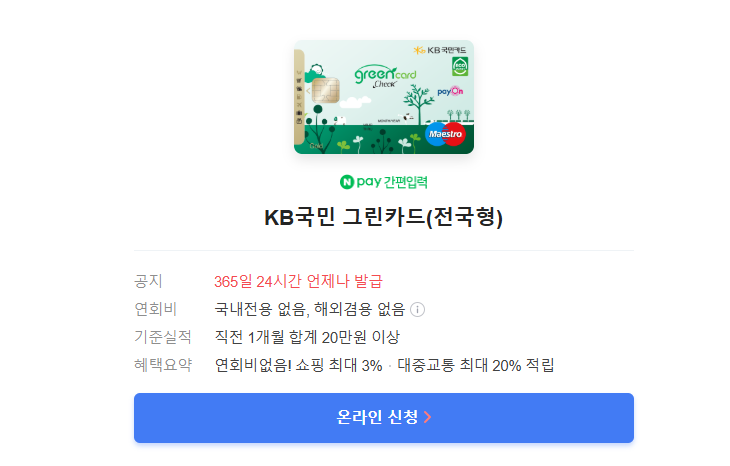 - 네이버에서 그린카드 발급 검