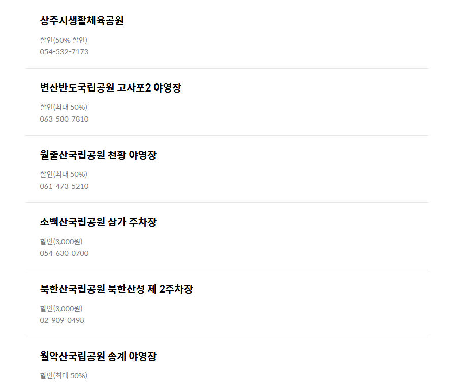 이 외에도 국립공원 및 국립공원 주차장에서 무료 및 할인혜택을 받을 수 있으니 꼭 확인해보세요!