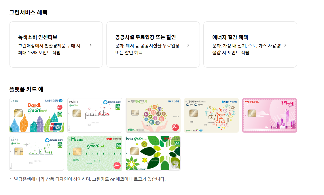 그린카드는 신용카드나 체크카드에 연계되어 발급받는 카드입니다.