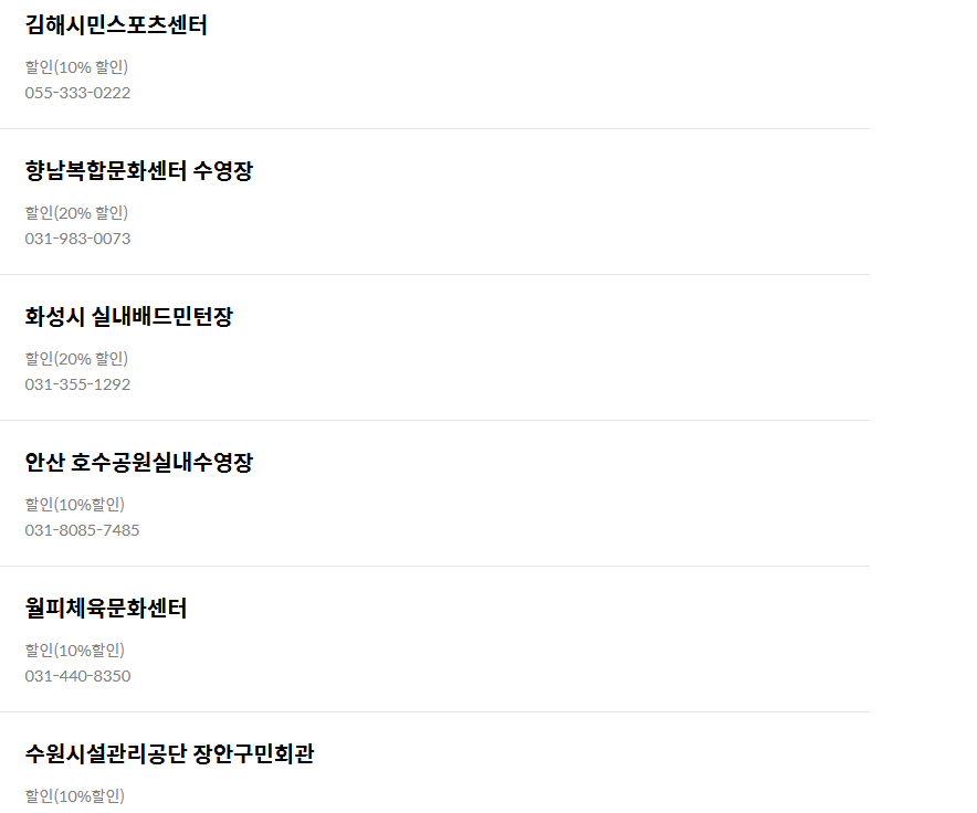 - 서귀포국민체육센터: 수영장 50% 할인