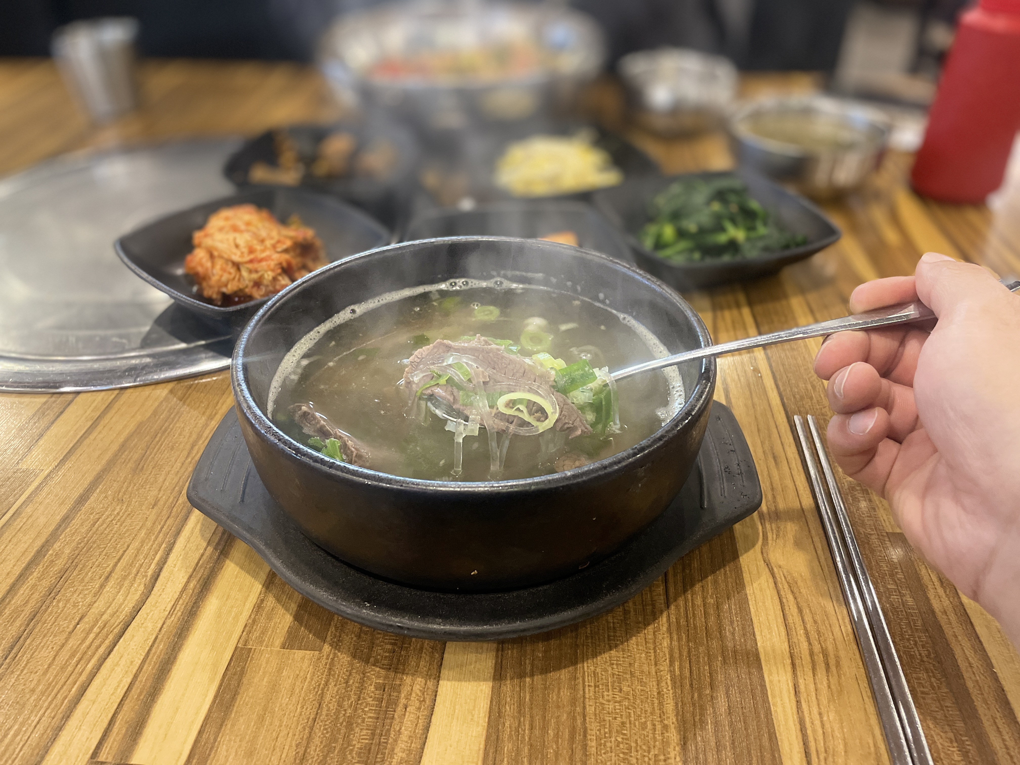 고산촌의 한우탕은 맑은 국물임에도 깊고 진한 맛이 인상적입니다. 잘 손질된 한우 고기가 푸짐하게 들어 있으며, 대파와 후추가 어우러져 감칠맛을 더해줍니다. 고기를 씹을수록 육즙이 배어나오며, 국물 한 숟갈마다 속이 따뜻해지는 느낌이 듭니다.