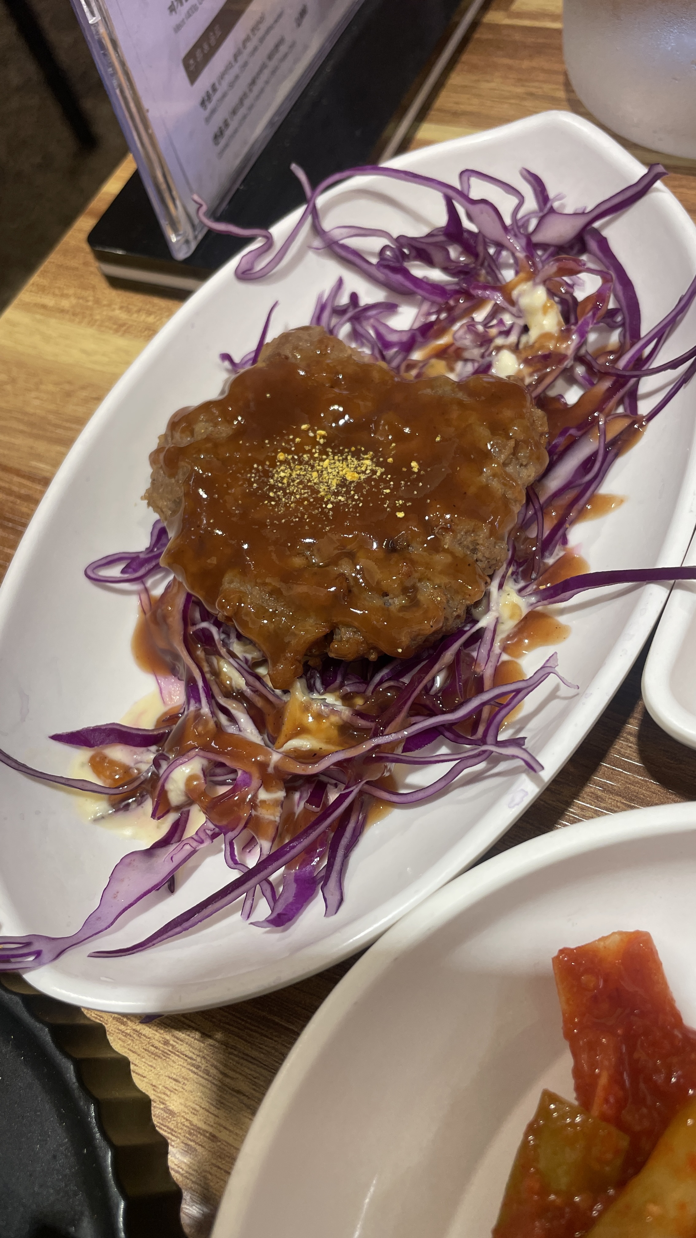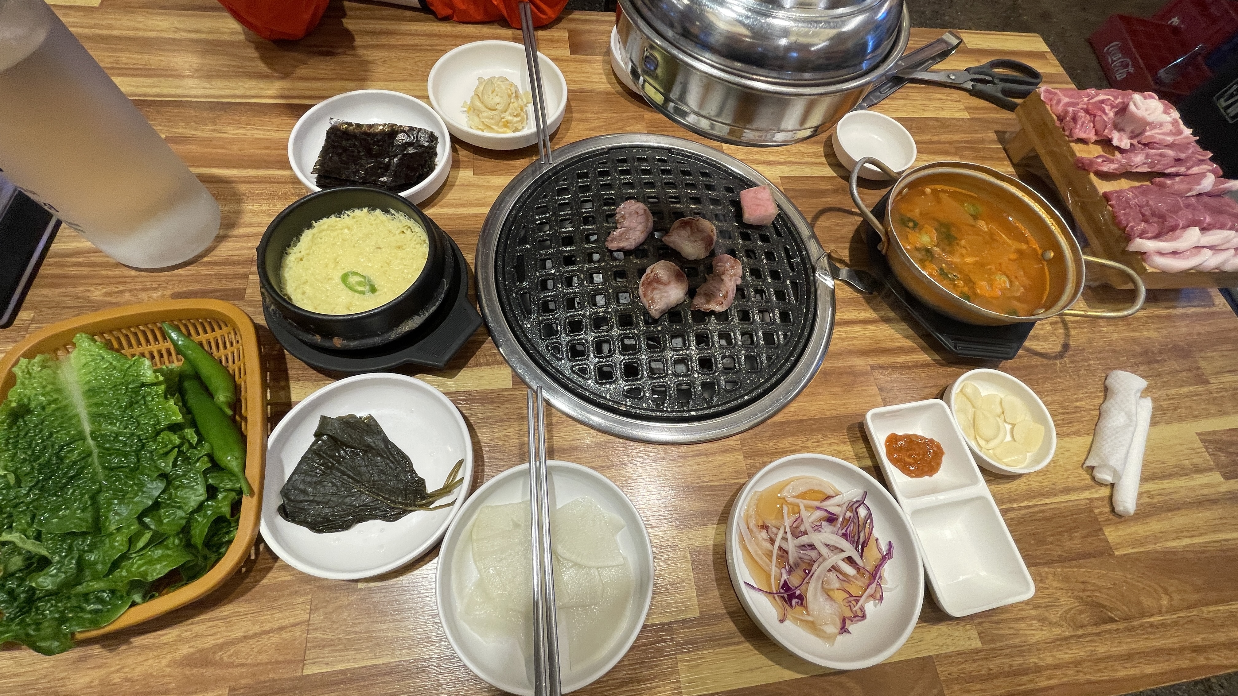 깔끔하고 정갈한 밑반찬들과 함께 제공되는 된장찌개, 계란찜, 쌈 채소들도 모두 수준급입니다. 무엇보다 감동이었던건 떡갈비, 돼지모양 감자, 별 모양 떡, 돼지 껍데기 등 서비스 등이 계속 나온다는 점!!!