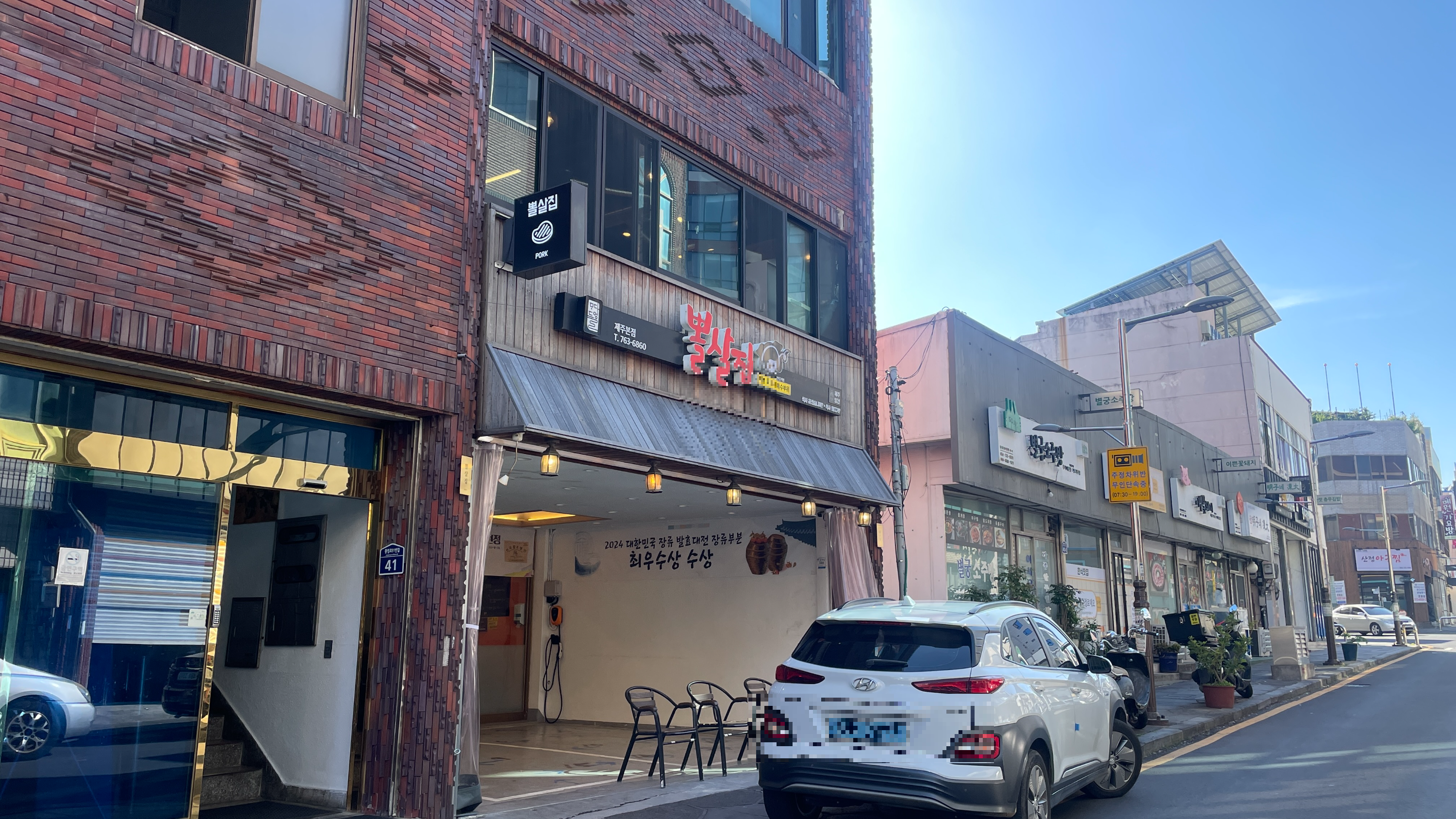 제주시 중심가 골목에 자리잡은 '뽈살집'. 외관은 깔끔하고 모던한 느낌인데요, 입구에는 2022~2024 대한민국 장류 발효대전 최우수상 수상과 발효음식 명인 선정 현수막이 걸려 있어, 이미 실력은 검증된 곳이라는 걸 알 수 있어요.