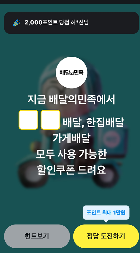 배달의 민족 퀴즈만 계속 반복이 되네?!