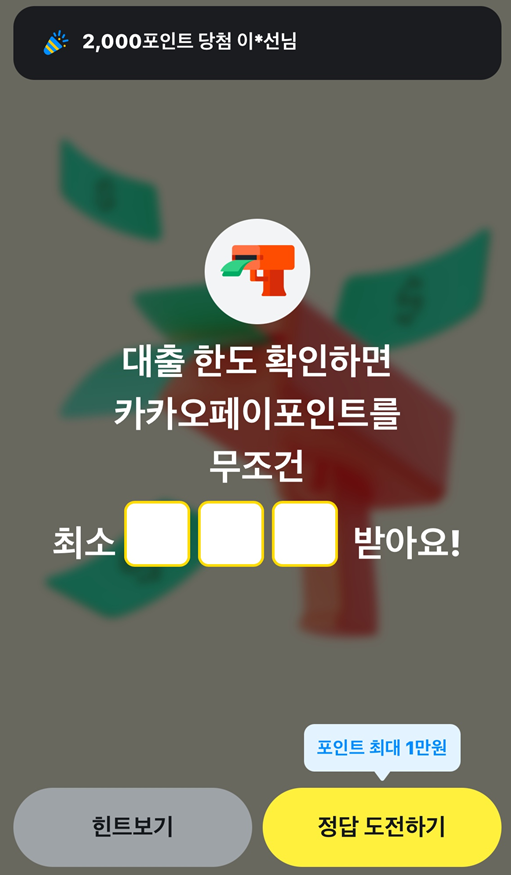 대출 한도 확인하면 카카오페이포인트를 무조건 최소 10원 받아요!