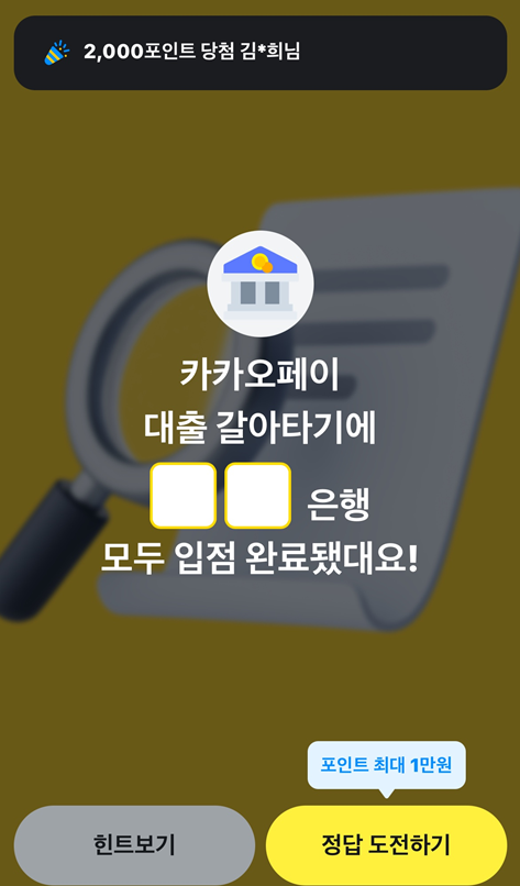 - 퀴즈에 성공하면 보통 카카오페이 포인트 또는 기타 리워드를 받을 수 있습니다.