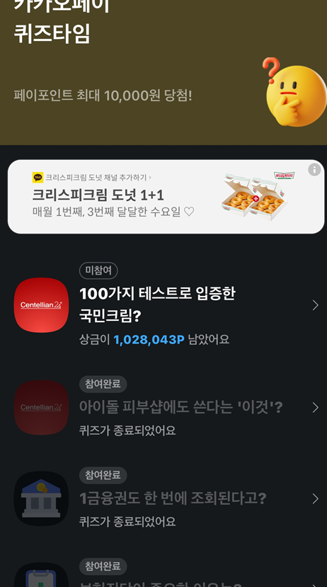 - 카카오톡 앱에서 '카카오페이' 서비스를 선택하거나, 퀴즈 관련 알림 메시지를 통해 접근할 수 있습니다.