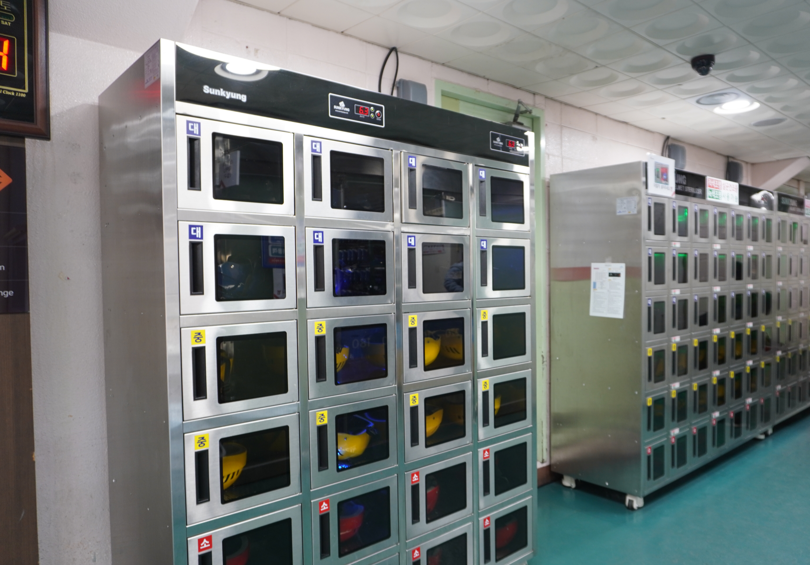 티켓팅을 마쳤다면 이제 헬멧과 스케이트를 대여해야겠죠? 입구에서 오른쪽에 위치하고 있습니다. 예전엔 헬멧들이 사이즈별로 큰 상자에 쌓여있었는데 이제는 정말 위생적으로 변하였더라구요. 헬멧 사이즈마다 셀멧 보관함에서 뽀송뽀송하게 건조되고 있었습니다. 훌륭합니다.~!!ㅎㅎ