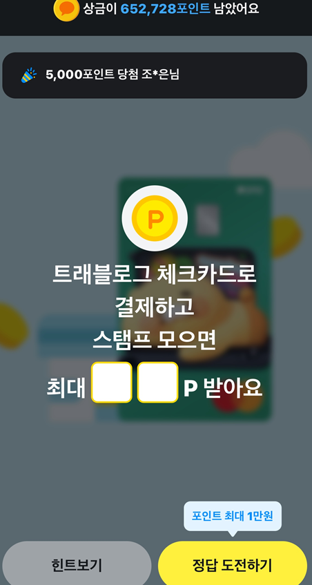 [앱테크] 카카오페이 퀴즈타임 6월12일정답(트래블로그 카드편)