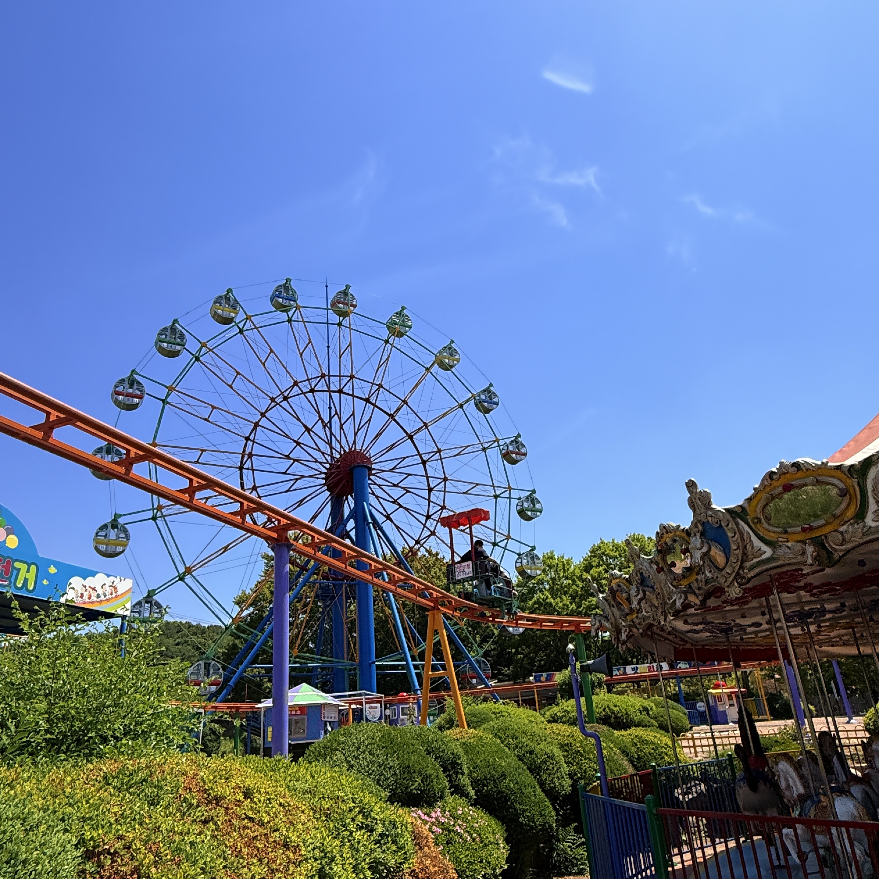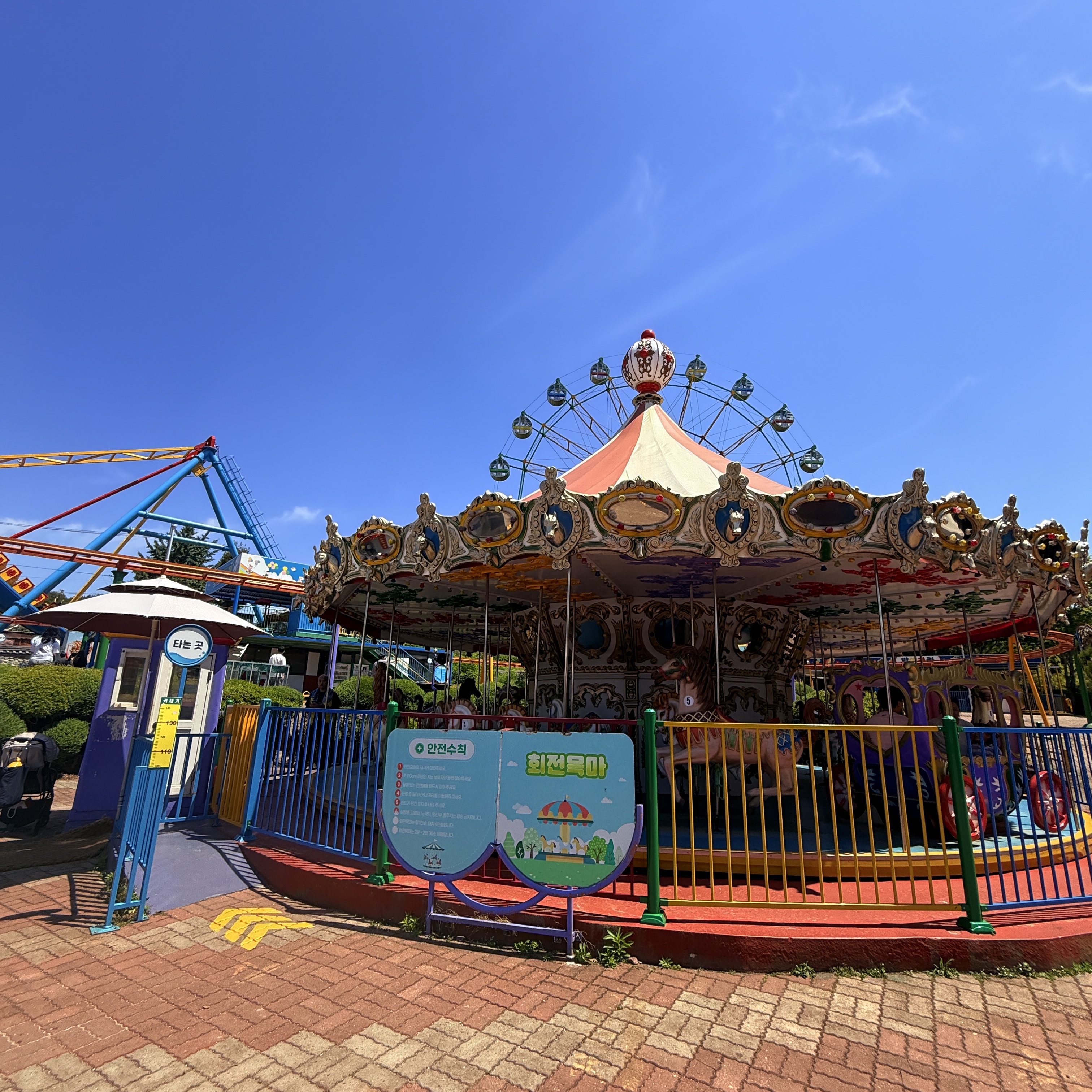 하늘 위에서 전주를 바라보고 싶다면, 꼭 타봐야 할 건 대관람차입니다. 크지는 않지만 아담하고 귀여운 이 대관람차는 아이와 함께 타기 좋은 코스! 느리게 회전하며 드림랜드와 전주동물원을 한눈에 담을 수 있어요.