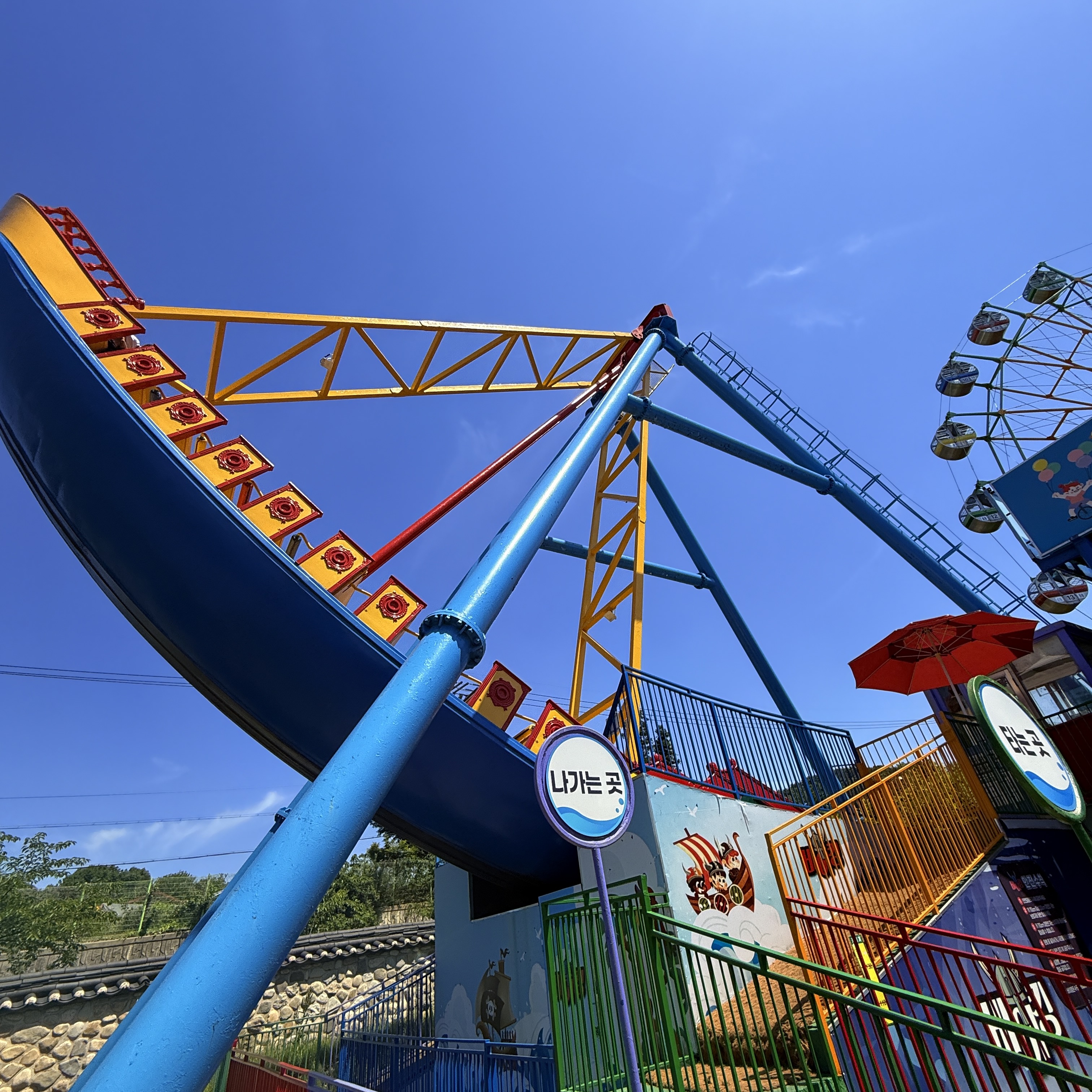조금 더 스릴을 원한다면 바이킹이 제격! 양쪽으로 점점 더 크게 흔들리는 배는 생각보다 스릴감이 꽤 있어, 아이들뿐만 아니라 어른들에게도 인기가 많답니다. 놀이공원에서 바이킹은 무조건이죠!!ㅎ