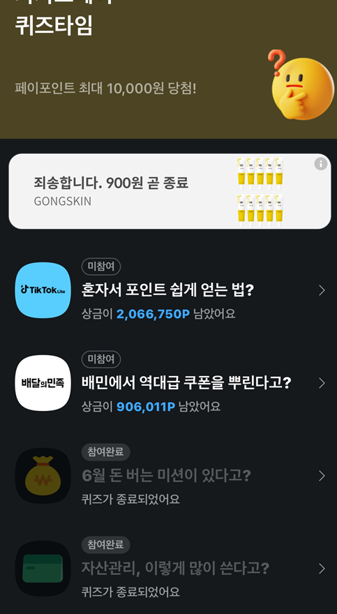 - 일부 퀴즈는 특정 기업이나 브랜드와 협력하여 제공되며, 관련 상품이나 서비스에 대한 혜택을 추가로 제공하기도 합니다.