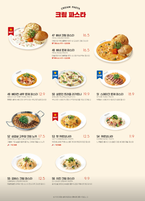 그 외 베이컨 새우 로제 파스타를 주문해서 먹었는데... 역시나 무난한 맛입니다. 라라코스트는 전체적으로 다양한 메뉴를 다루면서 무엇을 주문하든 실패없는 무난한 맛을 선사하는 것 같아요. 아이들과 함께 가거나 단체로 방문할때 아주 좋은 장점이 되겠죠?