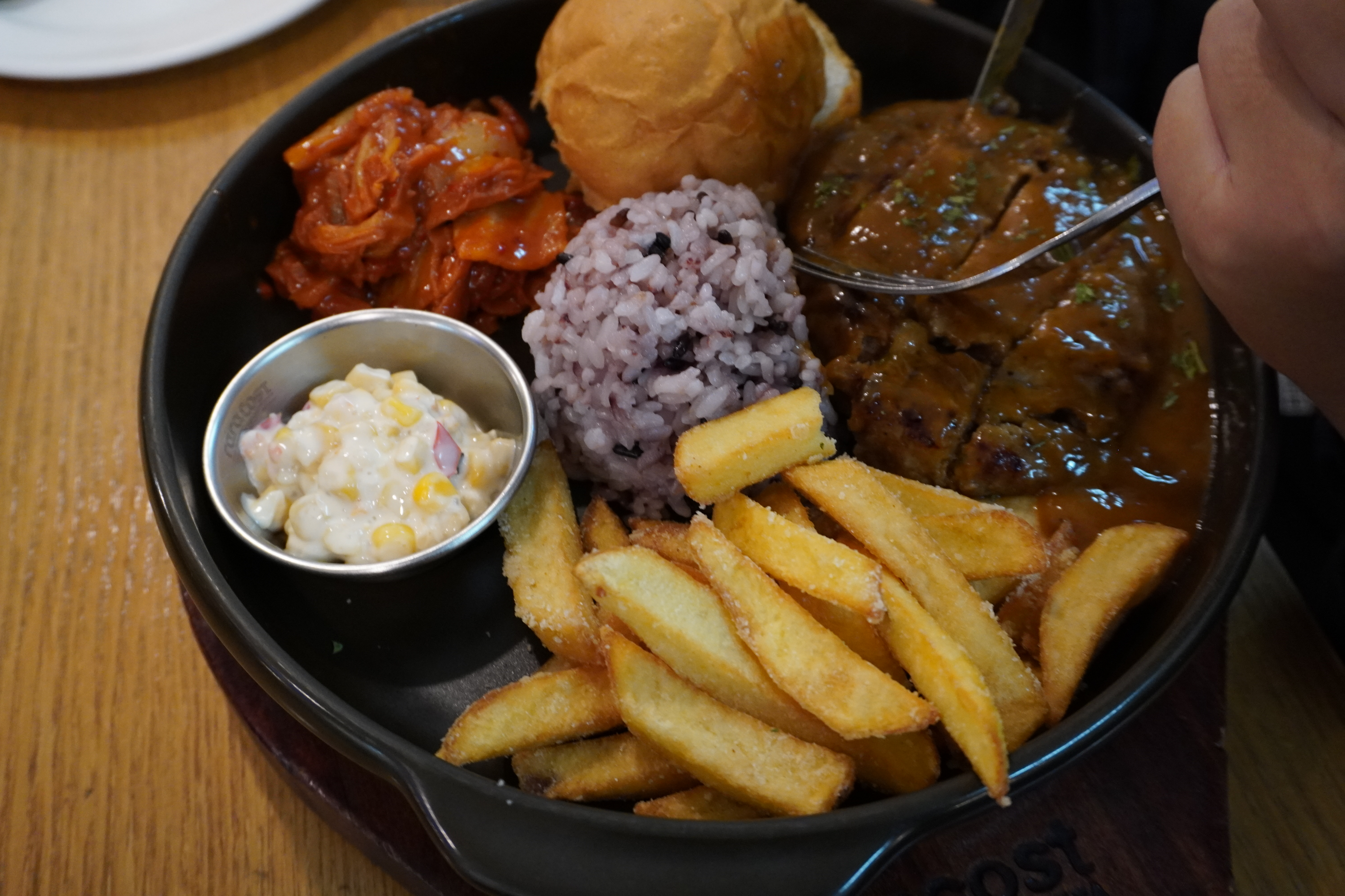 이건 수제 함박스테이크에요 . 함박스테이크... 맛 없기가 힘들겠죠? 이것 역시 남김없이 모두 잘 먹습니다. 아이들의 입맛을 사로 잡는 라라코스트더라구요.