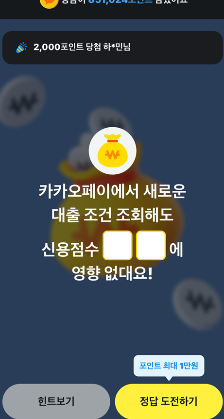 카카오페이에서 새로운 대출 조건 조회해도 신용점수 하락에 영향 없대요!