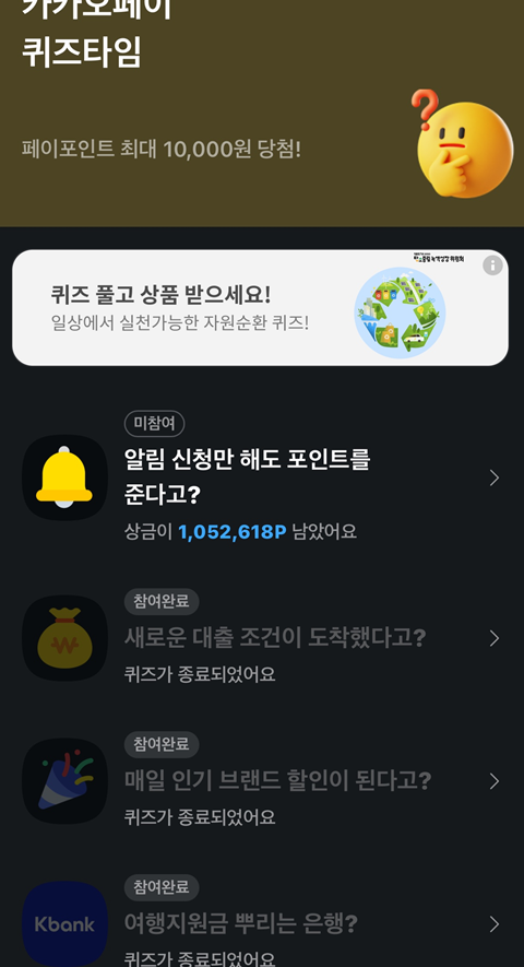 - 카카오톡 앱에서 '카카오페이' 서비스를 선택하거나, 퀴즈 관련 알림 메시지를 통해 접근할 수 있습니다.