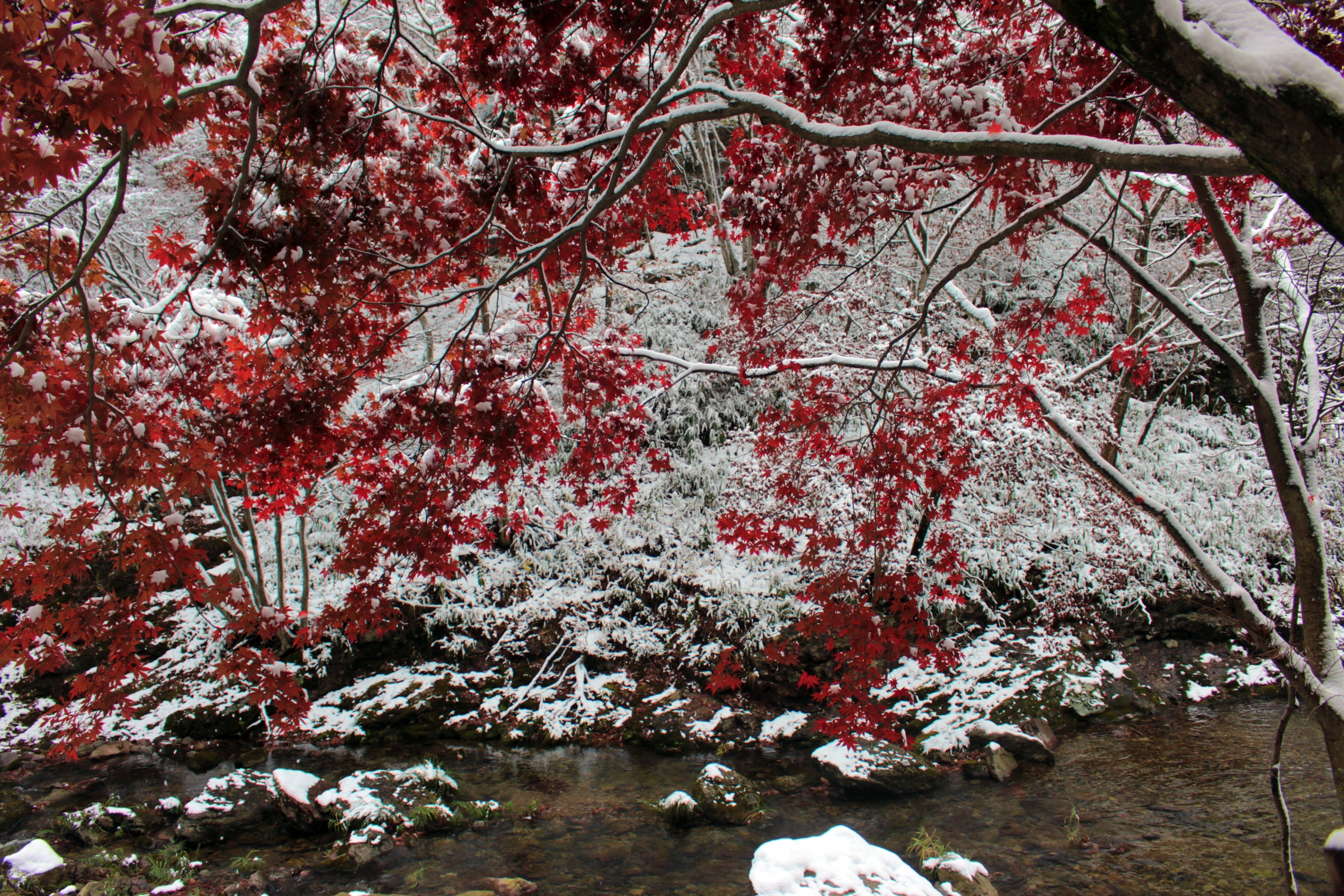 아직 남아있는 빨간 단풍위로 하얀 눈이 내려 동화속에 들어온 듯한 기분이 들더라구요.