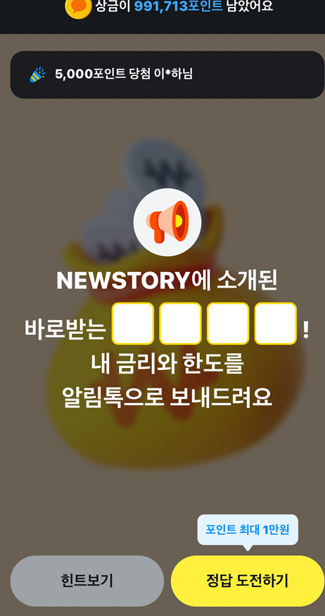 newstory에 소개된 바로받는 대출한도! 내 금리와 한도를 알림톡으로 보내드려요