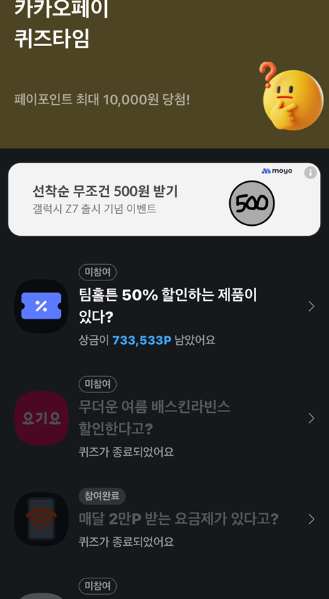 - 카카오톡 앱에서 '카카오페이' 서비스를 선택하거나, 퀴즈 관련 알림 메시지를 통해 접근할 수 있습니다.