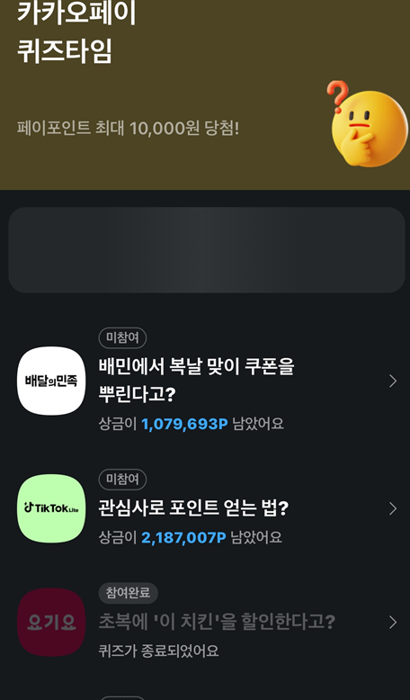 - 카카오톡 앱에서 '카카오페이' 서비스를 선택하거나, 퀴즈 관련 알림 메시지를 통해 접근할 수 있습니다.