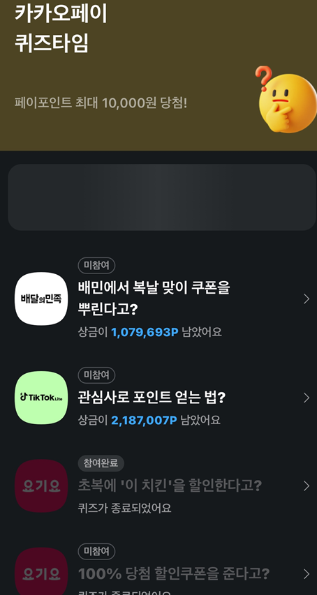 - 카카오톡 앱에서 '카카오페이' 서비스를 선택하거나, 퀴즈 관련 알림 메시지를 통해 접근할 수 있습니다.