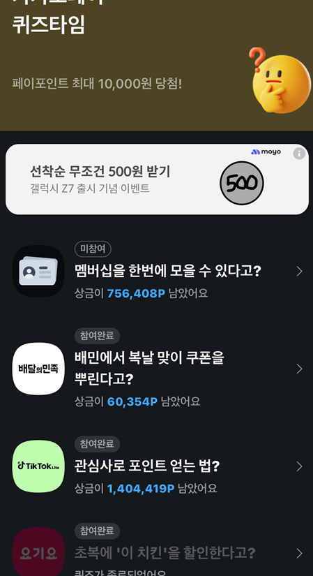 • 퀴즈는 다양한 주제로 구성되며, 가볍게 즐길 수 있는 상식 퀴즈부터 특정 브랜드와 관련된 정보 퀴즈까지 다양합니다.