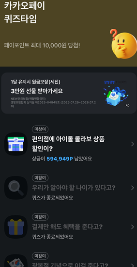 - 카카오톡 앱에서 '카카오페이' 서비스를 선택하거나, 퀴즈 관련 알림 메시지를 통해 접근할 수 있습니다.