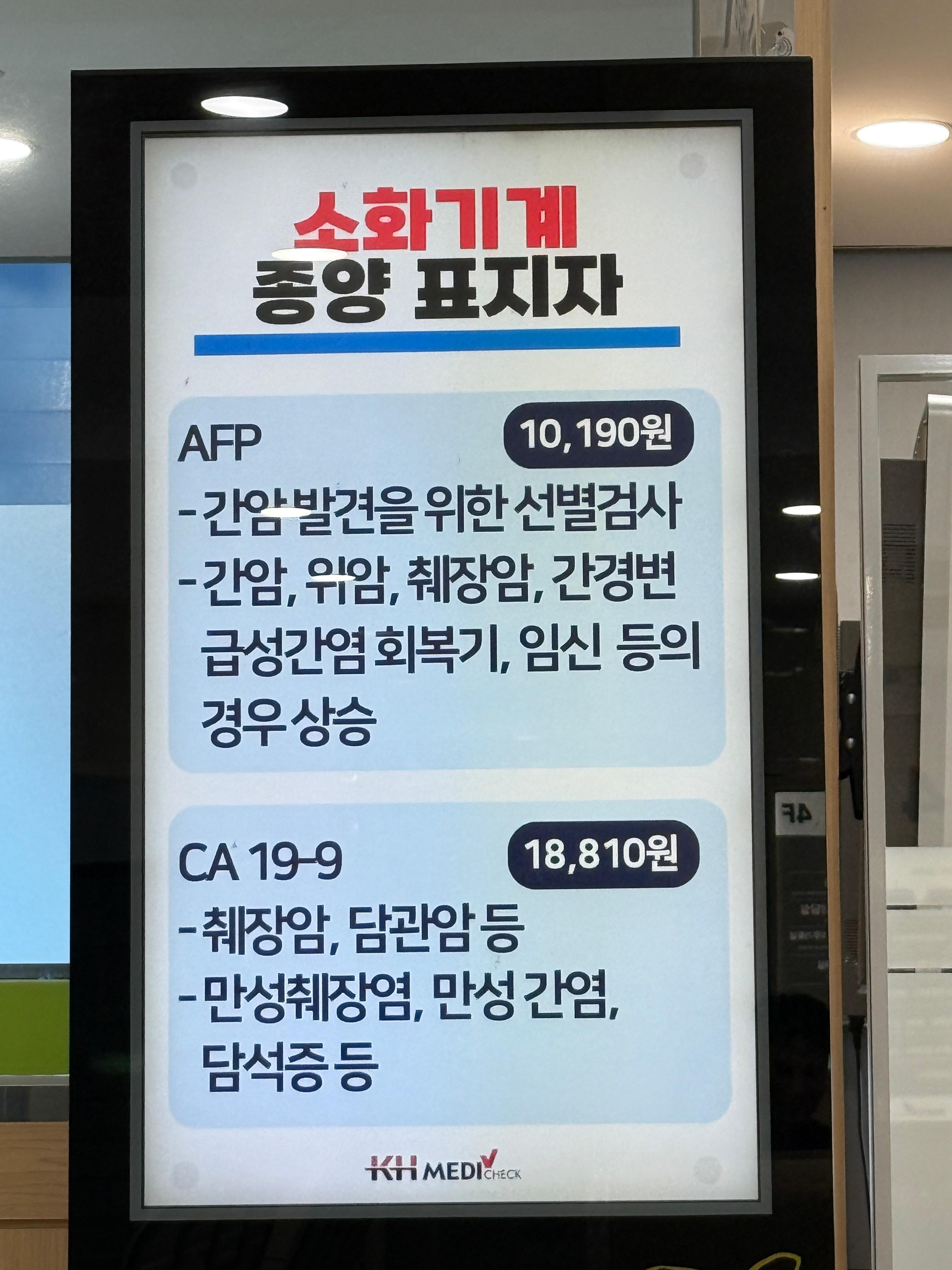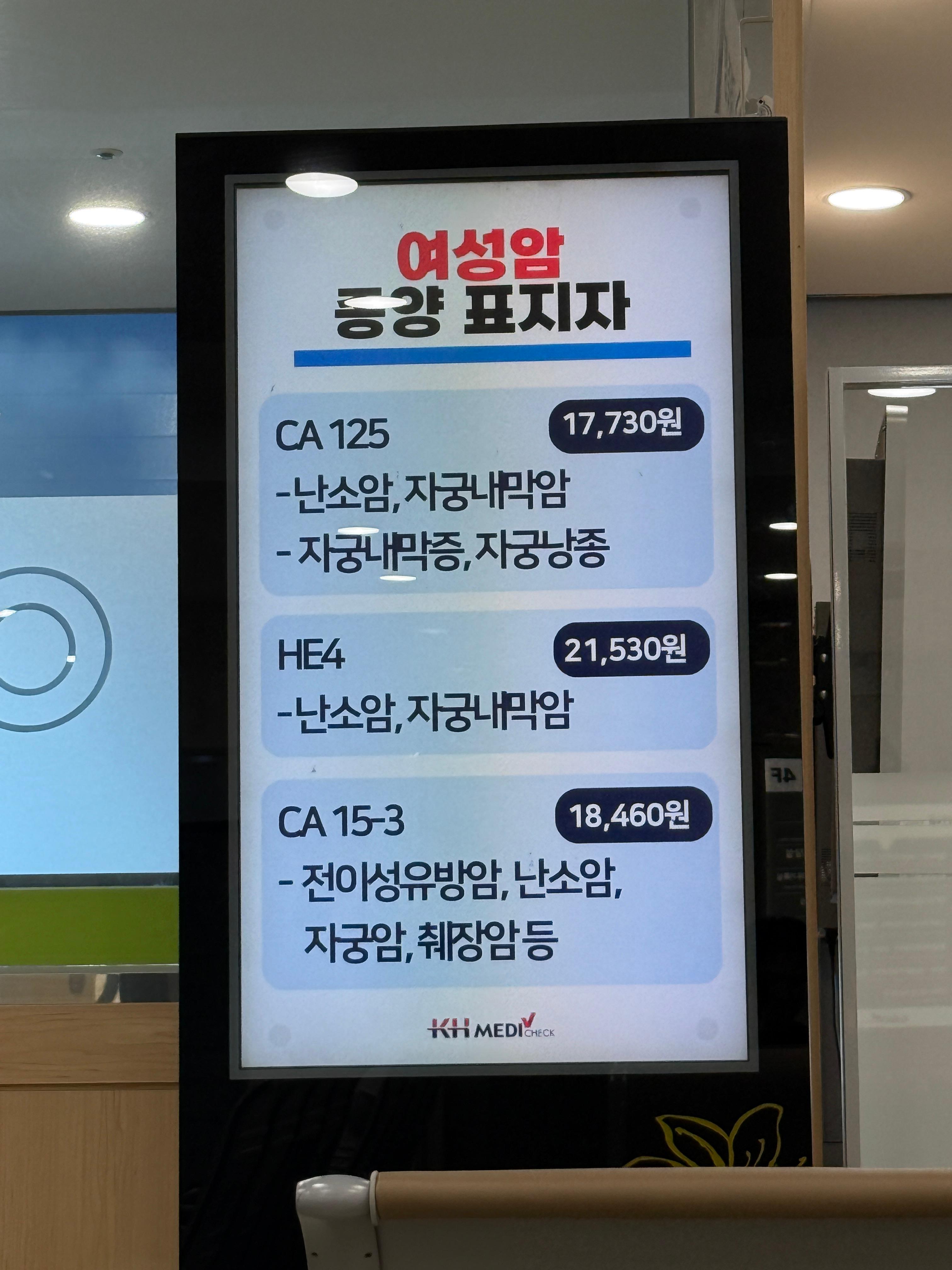 제가 검진한 항목들을 참조해 보시기 바랍니다. 저는 요즘 젋은 세대에서 많이 발생하는 암을 위주로 검사해봤습니다.