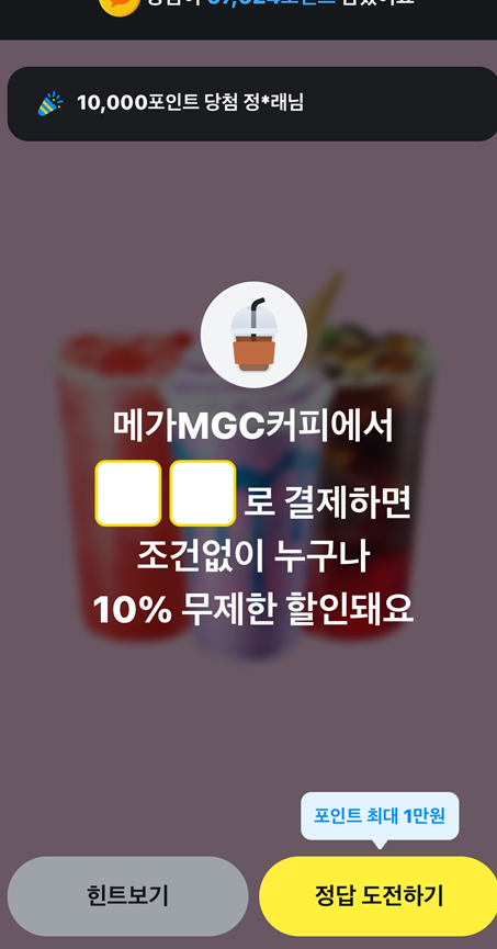 메가mgc커피에서 굿딜로 결제하면 조건없이 누구나 10^%무제한 할인돼요