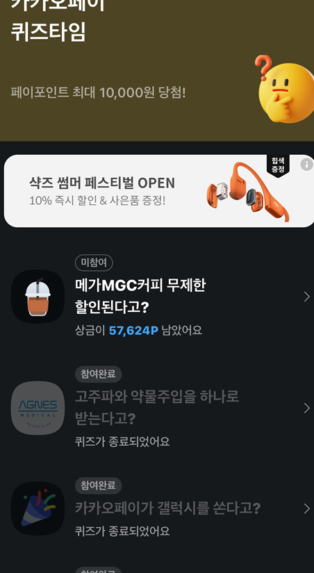 - 카카오톡 앱에서 '카카오페이' 서비스를 선택하거나, 퀴즈 관련 알림 메시지를 통해 접근할 수 있습니다.