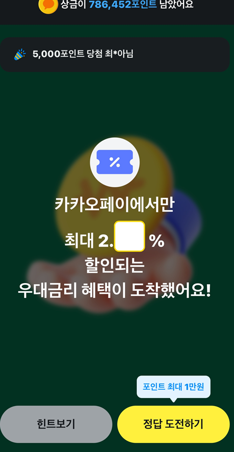 - 퀴즈에 성공하면 보통 카카오페이 포인트 또는 기타 리워드를 받을 수 있습니다.