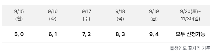 - 신청기간: 9.15. 09:00~ 11.30(일)24:00