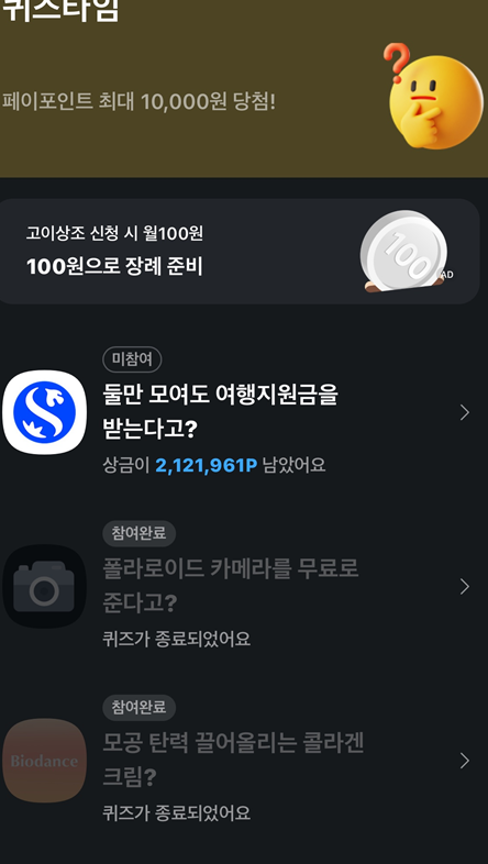 - 일부 퀴즈는 특정 기업이나 브랜드와 협력하여 제공되며, 관련 상품이나 서비스에 대한 혜택을 추가로 제공하기도 합니다.
